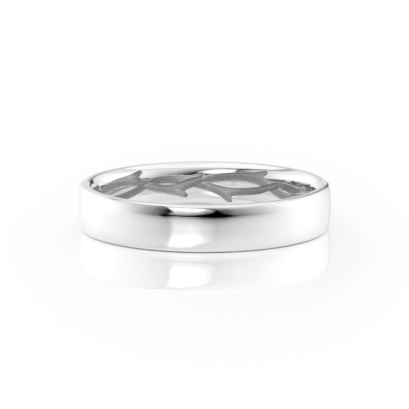 A softly curved ring that perfectly complements an existing engagement ring, symbolizing growing love and mutual adaptation.